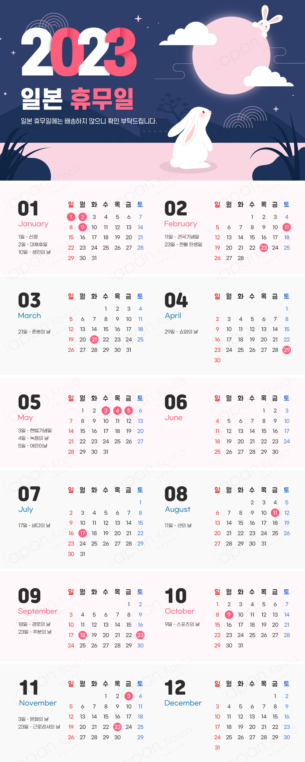2023년 일본 휴무일 안내