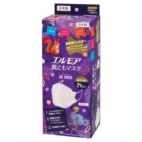 엘모아 3D 마스크 화이트 비비드 애니멀 24매입 (개별 포장)
