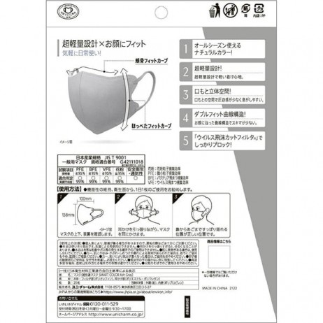 유니참 초쾌적 마스크 스마트컬러 내추럴 베이지 보통 사이즈 7매입