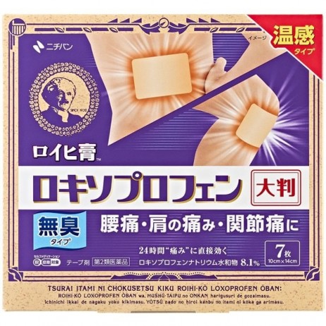 | 일본 니치반의 로이히 고 로키소프로펜 대형 7매입 제품입니다. 유효성분 로키소프로펜나트륨수화물 8.1%를 함유한 온감 타입의 붙이는 진통·소염 패치로, 통증 부위에 밀착되어 염증을 억제하고 통증을 완화합니다. 일반형보다 넓은 대형 사이즈로 허리, 등, 허벅지 등 넓은 부위 통증 케어에 적합합니다. 하루 1회 부착으로 24시간 지속 효과를 기대할 수 있는 일본 제2류 일반의약품입니다. | |